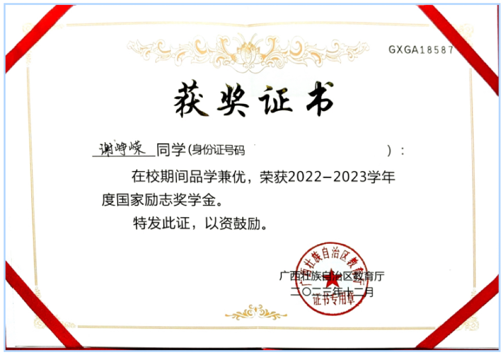 一分耕耘,一分收获。他的努力得到了认可,先后获得国家励志奖学金、国家奖学金,这不仅是对他学业成绩的肯定,更是对他勤奋精神的褒奖。此外,他还考取了普通话一级乙等证书,为自己的专业学习打下了坚实的基础。