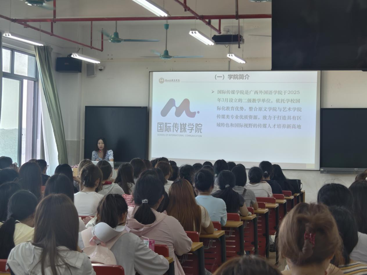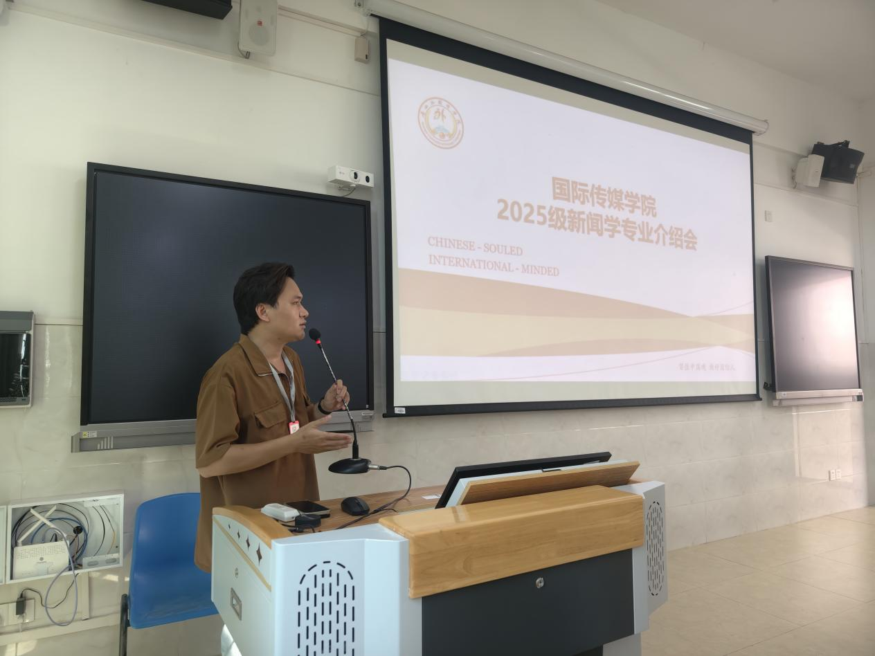 为使新生充分了解专业内涵与发展前景,新闻与传播系于近日成功举办2025级新生专业介绍会。系主任卢霖珮、副主任刘璐珂与农利翔老师分别主讲,就传播学、网络与新媒体、新闻学三个专业方向进行了系统介绍。