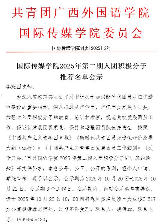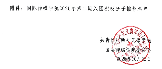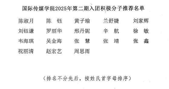 国际传媒学院2025年第二期入团积极分子推荐名单公示