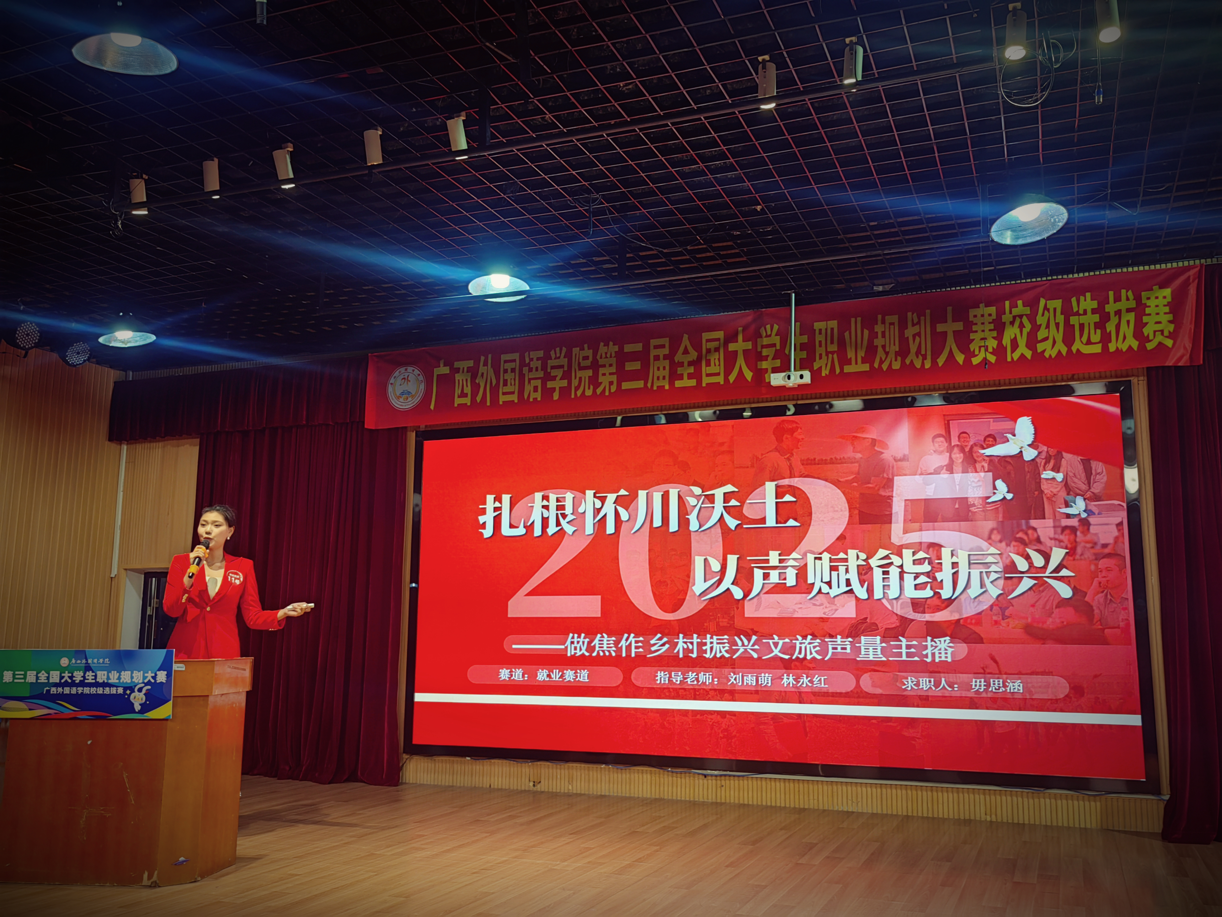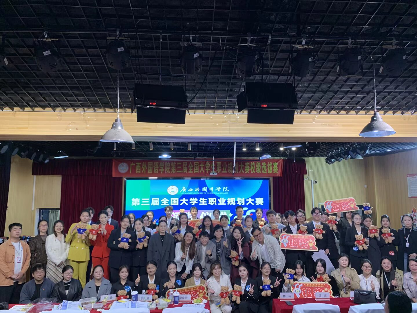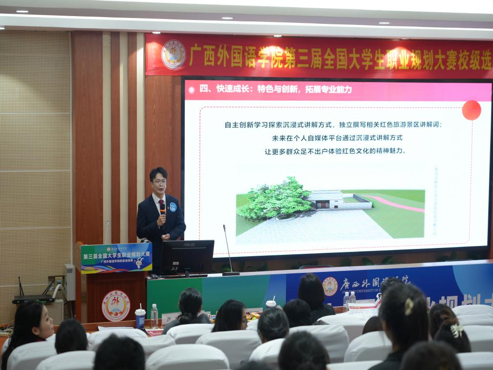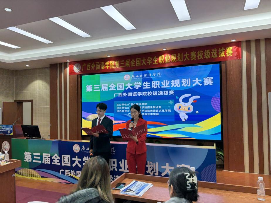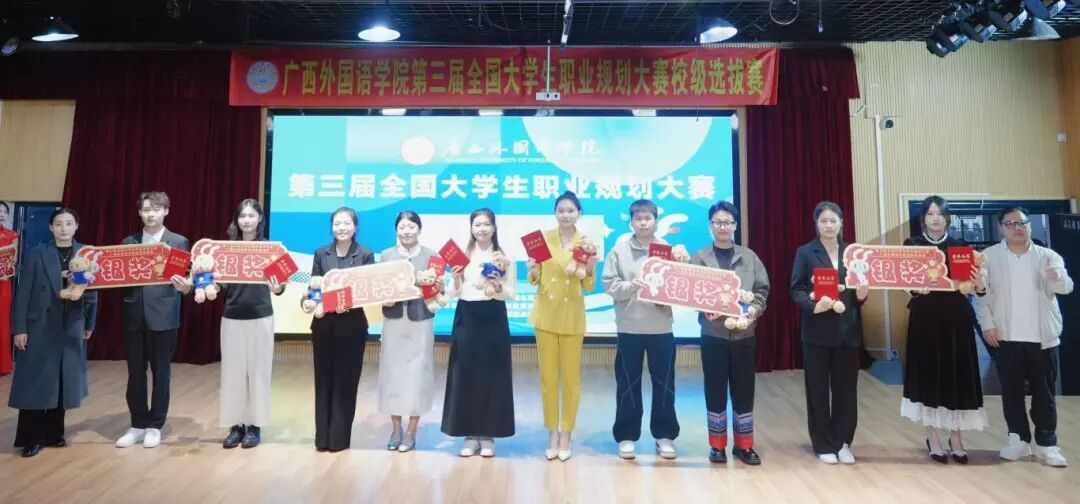 12月12日,第三届全国大学生职业规划大赛广西外国语学院校级选拔赛在同声传译室(A101)和多功能演播厅(A301)圆满落幕。国际传媒学院学子凭借对传媒行业的深度洞察、兼具专业性与创新性的规划方案,在激烈角逐中脱颖而出,荣获三金一银一铜的优异成绩,用实力展现了学院学子的职业规划素养与青春担当。