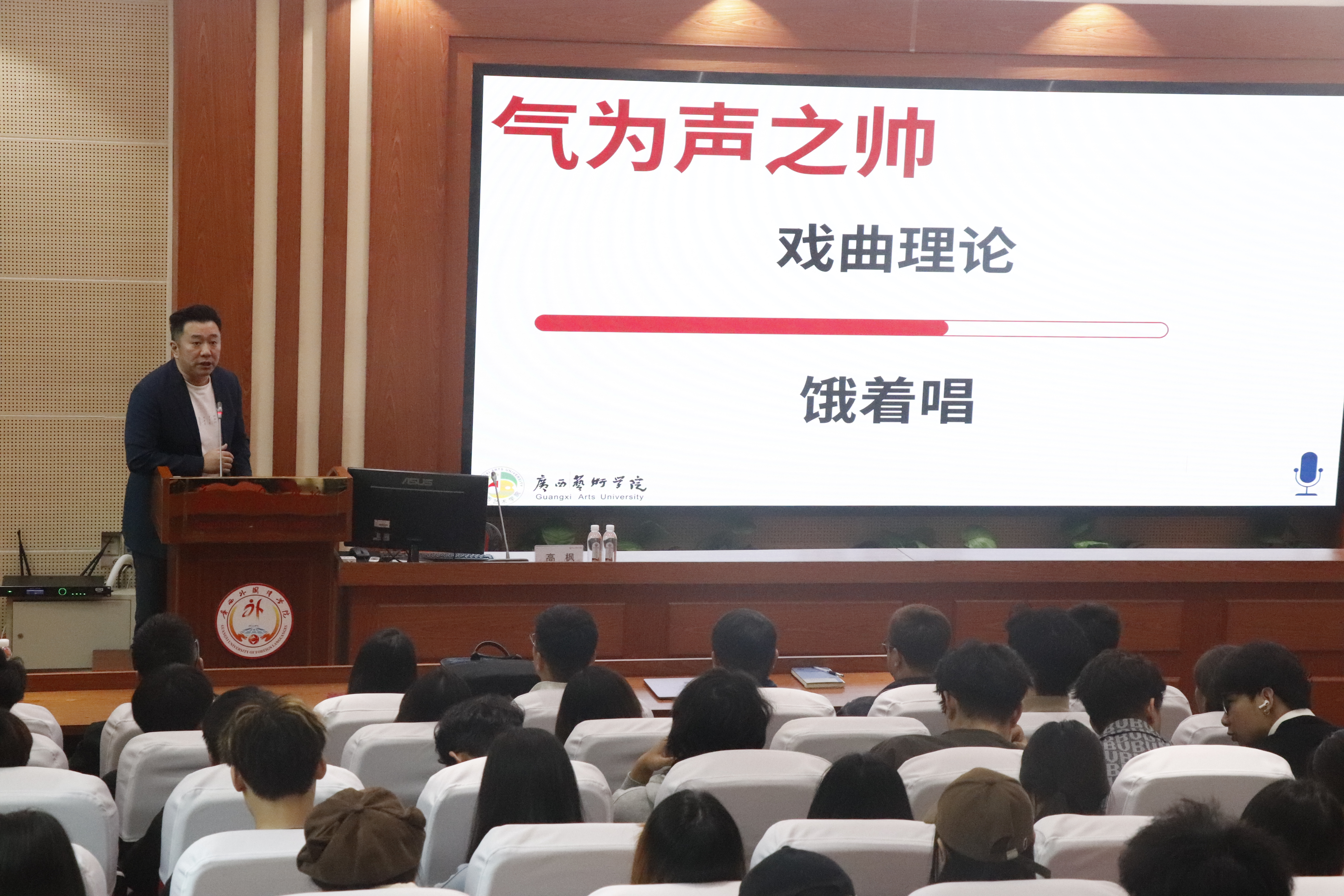 为深入推进专业建设,拓宽师生学术视野,助力高素质传媒人才培养,3月17日下午,国际传媒学院“传媒+”博学大讲堂系列讲座在时习楼A101顺利开讲。 讲座特邀中国播音主持最高奖“金话筒”金奖获得者、广西艺术学院影视与传媒学院副院长高枫教授主讲,主题为 《从声量到能量》。讲座由国际传媒学院执行院长陈佳主持。