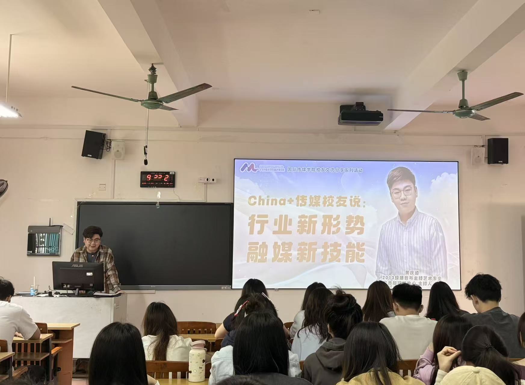 3月24日上午,国际传媒学院“China + 传媒校友说”交流分享会成功举办。本次分享会以“行业新形势 融媒新技能”为主题,特邀南宁市融媒体中心主持人、导演,学院优秀校友黄庆遒返校开讲,为播音与主持艺术专业学子带来传媒行业前沿洞察与融媒实用技能指导,充分发挥杰出校友榜样示范作用,助力学院人才培养与行业发展同频共振。